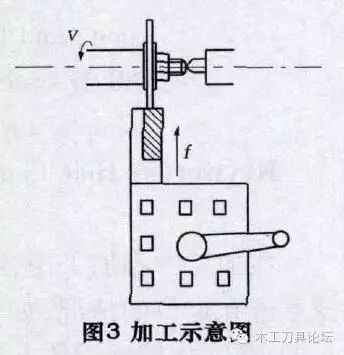 將待加工的高速鋼刀桿固定于車(chē)床刀架上,移 動(dòng)大、中拖板,使刀桿位置與砂輪片平齊,確定位置后 ,先高速轉(zhuǎn)動(dòng)主軸 ,再手搖中拖板手柄,驅(qū)動(dòng)高速鋼刀桿與砂輪片不斷接觸,見(jiàn)圖3,此過(guò)程中不斷加冷卻液 。